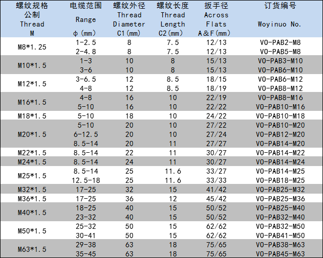 螺紋規格:公制(M)英制(G)美制(NPT)德制(PG)